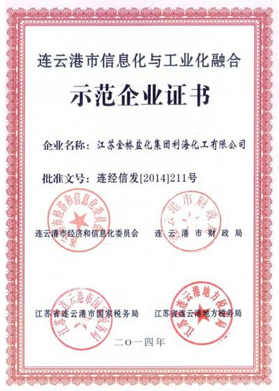 连云港市信息化与工业化融合师范企业